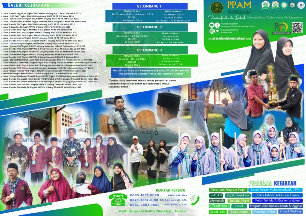 - Next PENGUMUMAN SELEKSI GELOMBANG 1 PSB PONDOK PESANTREN ASY SYIFA’ MUHAMMADIYAH BANTUL TAHUN PELAJARAN 2024/2025