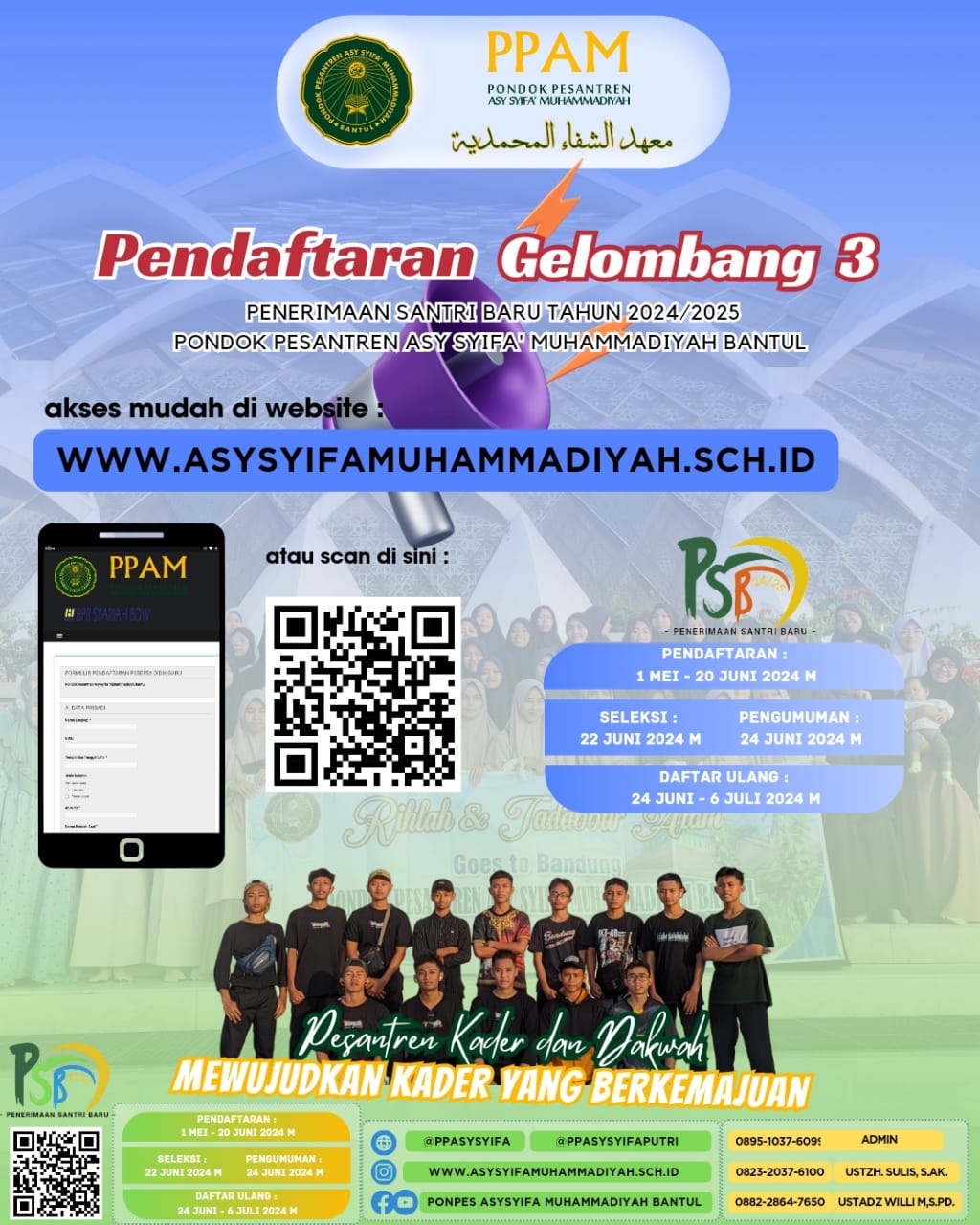 - Previous PENGUMUMAN HASIL SELEKSI GELOMBANG 2 PENERIMAAN SANTRI BARU (PSB) PONDOK PESANTREN ASY SYIFA’ MUHAMMADIYAH BANTUL TAHUN PELAJARAN 2024/2025