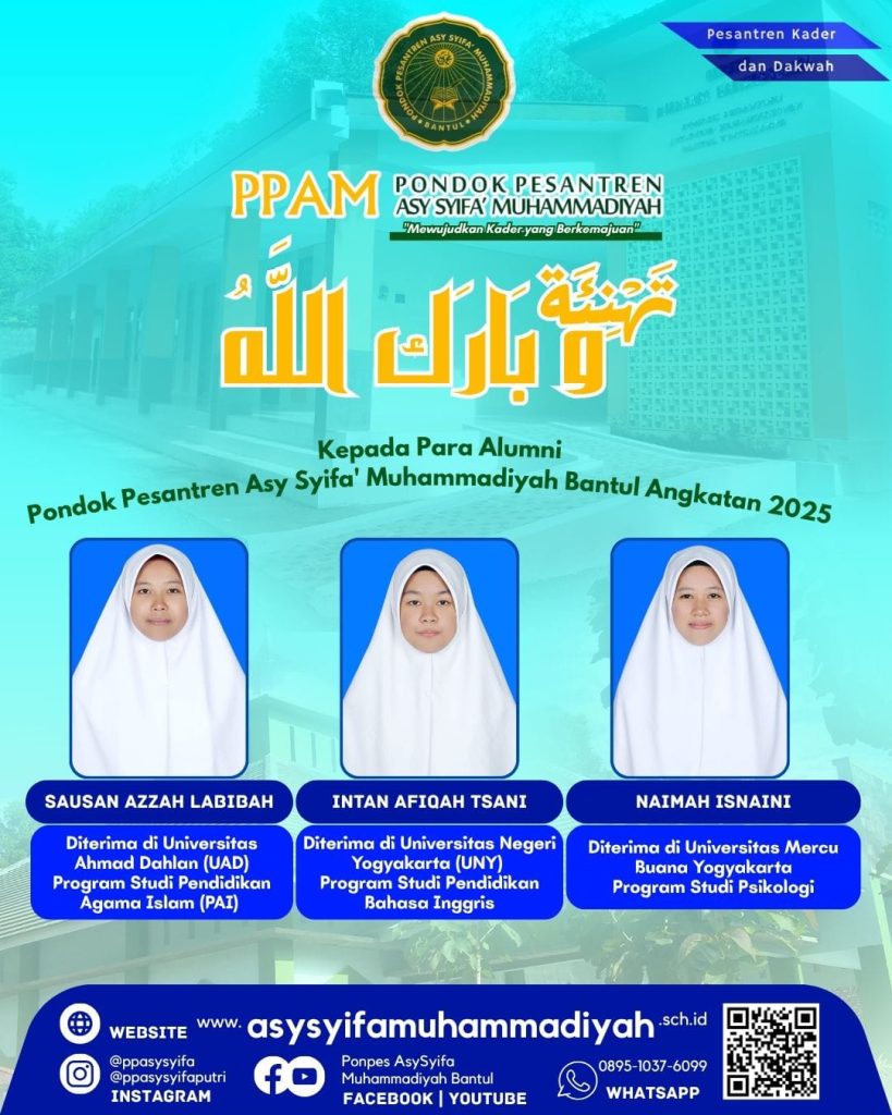 Kabar Gembira dari Alumni Pondok Pesantren Asy Syifa’ Muhammadiyah Bantul Angkatan 2025