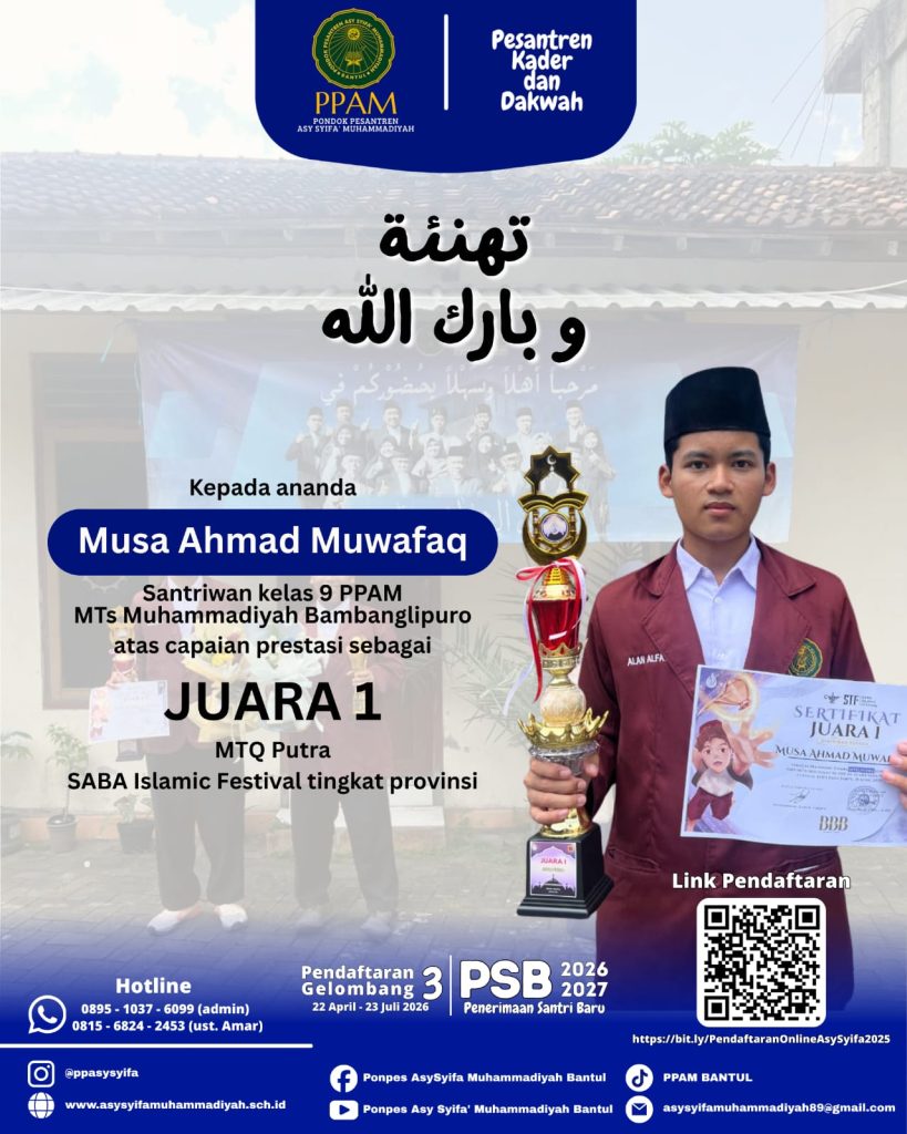 🥇 Juara 1 MTQ Putra – Ananda Musa Ahmad Muwafaq